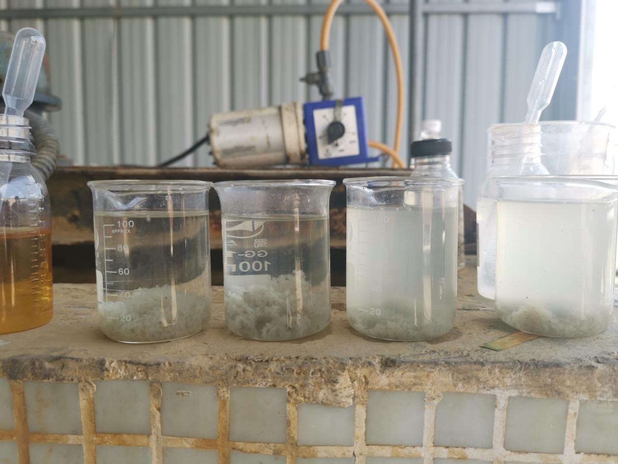東莞市一家五金零部件廠,水簾柜和噴淋塔廢水日處理量60噸/天,氣味較大,可溶性VOCS含量高,用常規(guī)A.B劑處理后出水混,氣味較大。每噸水投加1公斤破乳劑,70克氫氧化鈉,少量絮凝劑,500克凡清除臭劑,出水水質(zhì)清測,無明顯氣味,滿足客戶回用要求。