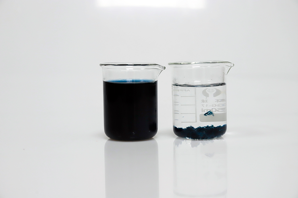 在使用工業廢水脫色劑時,可用原溶液或水將其稀釋10%至40%,然后直接添加到廢水中。攪拌幾分鐘后,進行沉淀或者氣浮。有色廢水中的有色物質被絮凝并從水中沉淀出來,實現分離得到清液。