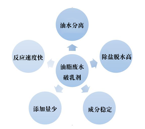 油脂廢水的油類物質漂浮在水面,會形成一層薄膜,能阻止空氣中的氧溶解到水中,使水中溶解氧減少,致使水體中浮游生物因缺氧而死亡,也妨礙水生植物光合作用,影響水體的自凈,導致水體變臭,破壞水資源的利用價值。油脂廢水破乳劑可幫助實現油脂廢水的油水分離,具有如下特點: